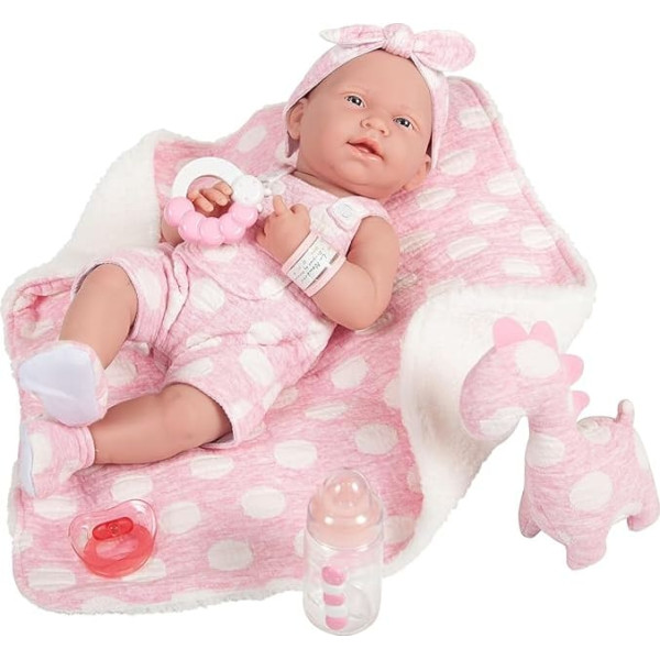 jc toys - Кукла новорожденная 38 см из мягкого винила, одежда и 5 аксессуаров, девочка, розовая, разработана в Испании Berenguer, 2 года