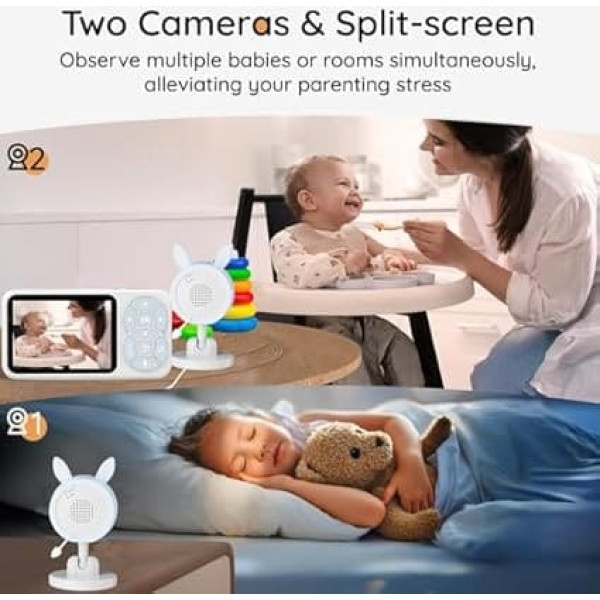 Радионяня с камерой 1080P HD 360°, 3.5 дюйма WiFi радионяня с приложением, ИК-ночное видение, 4X Zoom, видеоняня с детекцией движения / шума, 2-Way Audio, функц