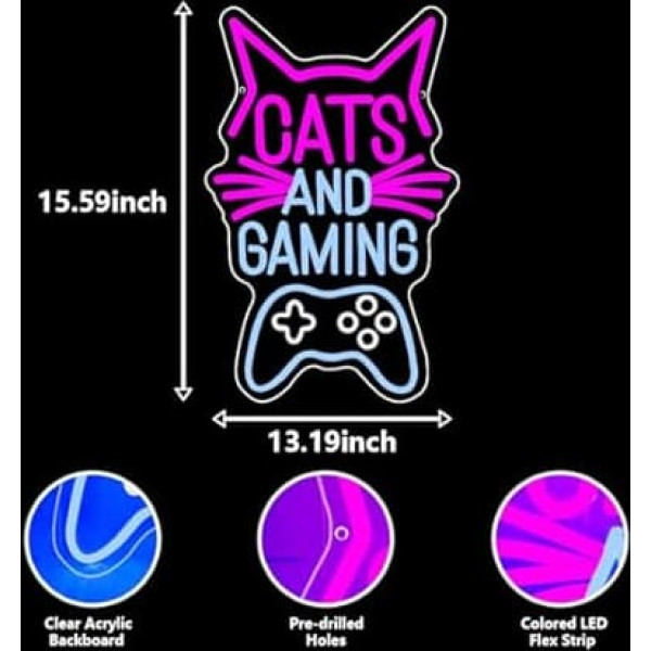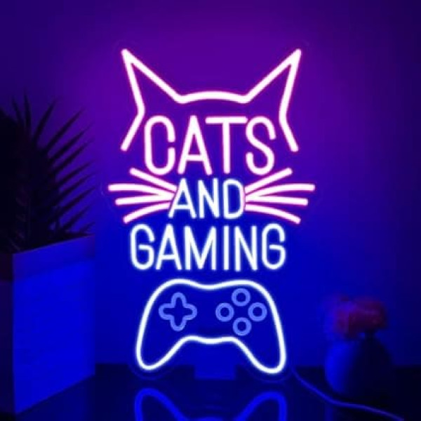Кошки и игры неоновый знак игровая кошка неоновый свет знаки для игровой комнаты стены украшения, прохладный геймер огни для спальни арт-д