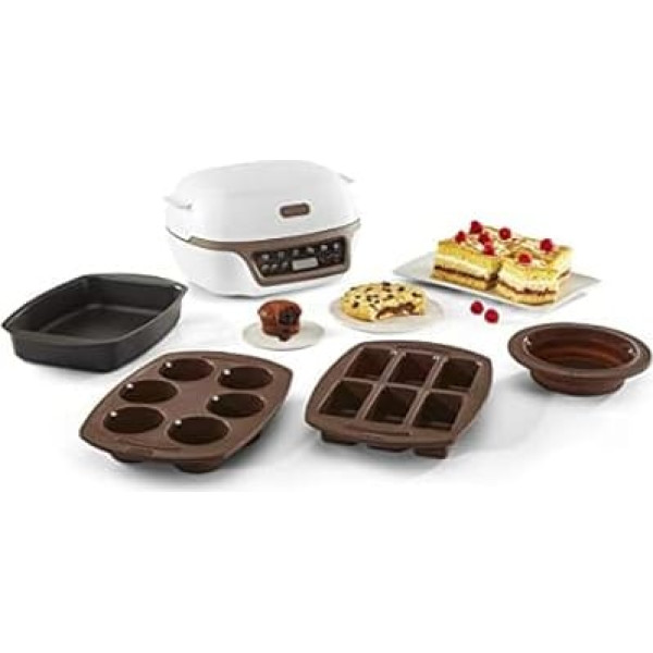 Торт-мейкер Tefal, 5 автоматических программ, 1 ручной режим, 3 гибкие формы, 1 большая форма для выпечки из стали с покрытием, совместима с Crispybake