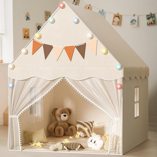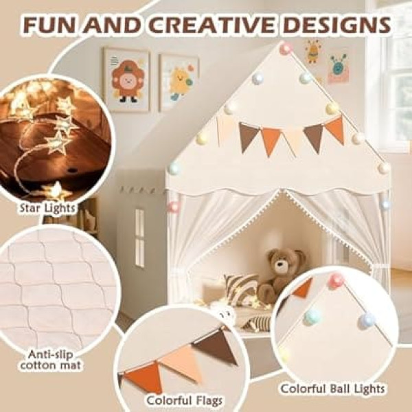 Детская игровая палатка EagleStone со звездным светом и мягким ковриком, игровой домик в нейтральном цвете, крытая палатка-кровать, мебель для и