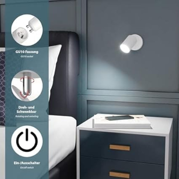 ledscom.de WAIKA Настенный точечный светильник, одна лампочка с выключателем, GU10 матовый черный, лампочка, выбор количества