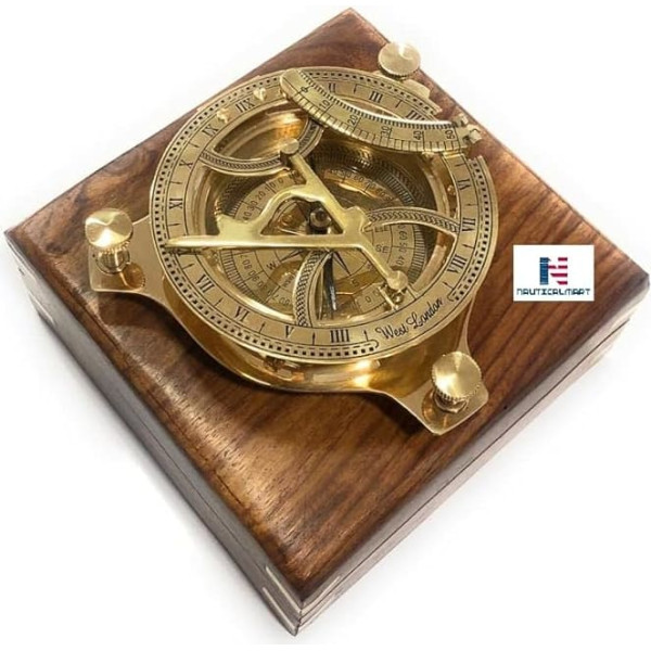 5" Sundial Compass Solid Brass Sundial (с деревянной коробкой)