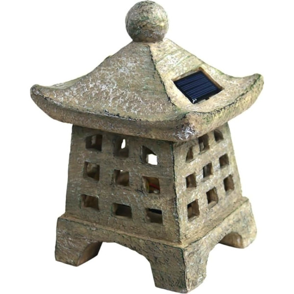 jojofuny Solar pagodenleuchte Garten Solarleuchte Außen Resin Steinoptik Solarbetrieben Landschaftsbeleuchtung Terrasse Weg Beleuchtung Dekor