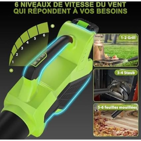 Беспроводной воздуходув для листьев, электрический воздуходув для листьев с 2 батареями 3,0 Ач и 6 регулируемыми скоростями, 256 км/ч, беспрово