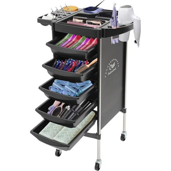 Парикмахерская тележка с 5 ящиками и колесами, рабочая тележка, парикмахерская тележка для стилиста, парикмахера, парикмахерского спа, чер