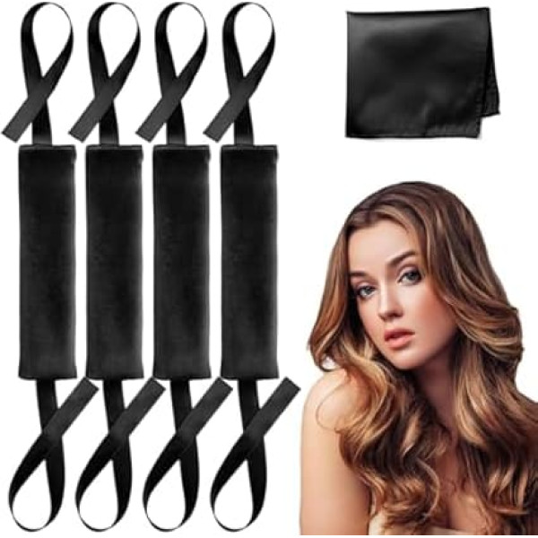 Lanzhire Jumbo Heatless Hair Curlers for Overnight Curls, Blowout Flexi Rod with Ribbon, No Heat Curlers to Sleep in, Soft Overnight Heatless Rods for All Hair Types