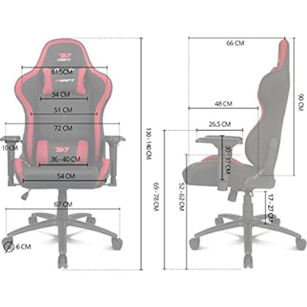 DRIFT GAMING Chair DR110 -DR110BK - Игровое кресло, hochdichter Stoff, 4D-Armlehnen, geräuscharme Rollen, Kolbenklasse 4, neigbar, Nacken-/Lendenwirbelkissen, Farbe schwarz