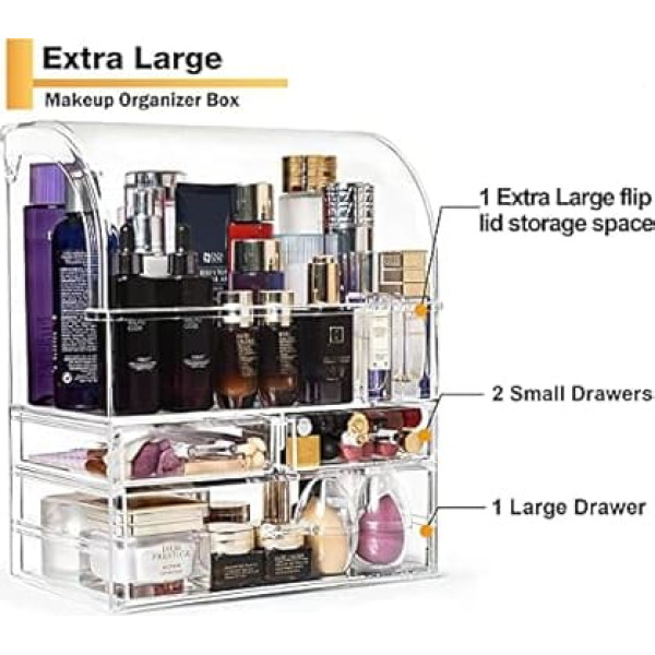 "Kousee" Макияж Организатор хранения, очень большой акриловый парфюмерии Уход за кожей Организатор Дисплей с ящиками, водонепроницаемый боль