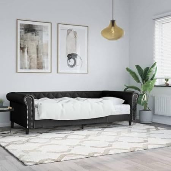Junzai Кровать с матрасом, черная, 90 x 200 см, искусственная кожа, диван-кровать, диван-кровать, диван-кровать, кровать для подростка, каркас крова