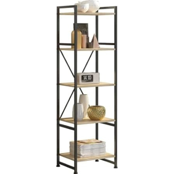 Tectake ® Книжный шкаф в промышленном дизайне, открытая полка с 5 уровнями, винтажная стоячая полка с защитой от опрокидывания, тонкая полка дл