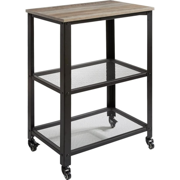 Ibuyke TMJ011Y Тележка для сервировки, кухонная полка на 4 колесах, стальной каркас, 3 полки, для кухни и гостиной, промышленный дизайн, 60 x 40 x 81 см