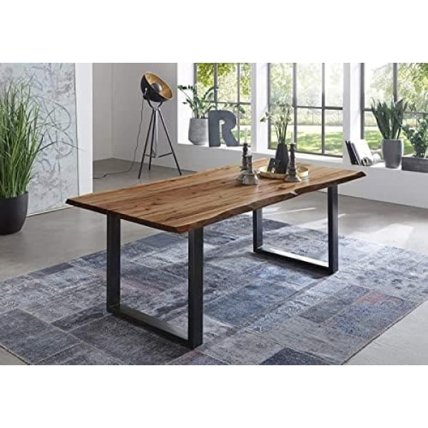 SAM Möbel outlet, обеденный стол Wane, акация, натуральный или орех, П-образный каркас, черный или серебристый.