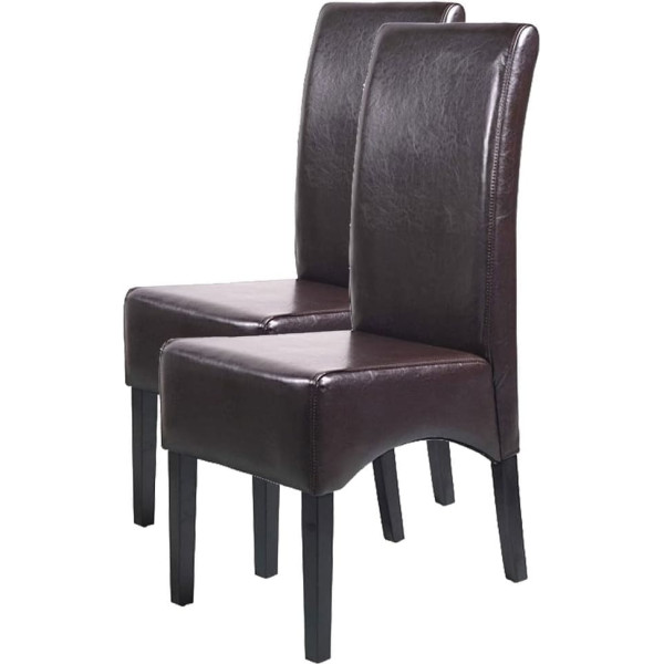 Mendler Комплект из 2 обеденных стульев Latina / кухонных стульев из кожи коричневого цвета с темными ножками