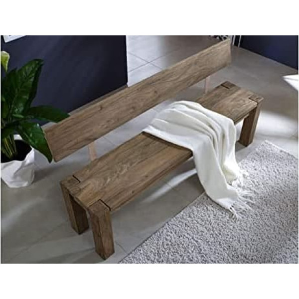 Massivmoebel24.De Современная скамья Nature Grey из массива дерева #703 - серая промасленная | из дерева шишэм - со спинкой | 200 x 35 x 76 см | Деревянная скамья и