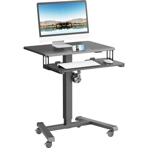 Ergomaker Регулируемый по высоте стол, стоячий стол с лотком для клавиатуры, 65 x 45 см, мобильный стол для ноутбука, надкроватный стол, черный, сто