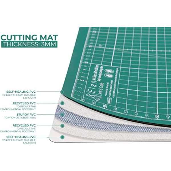 Elan Cutting Mat A0 A1 A2 A3 Green 5 Layer Cutting Mat Self-Healing Craft Mat Cut Resistant Craft Mat Desk Mat Cutting Mat for Sewing 120 cm 90 cm 60 cm 45 cm