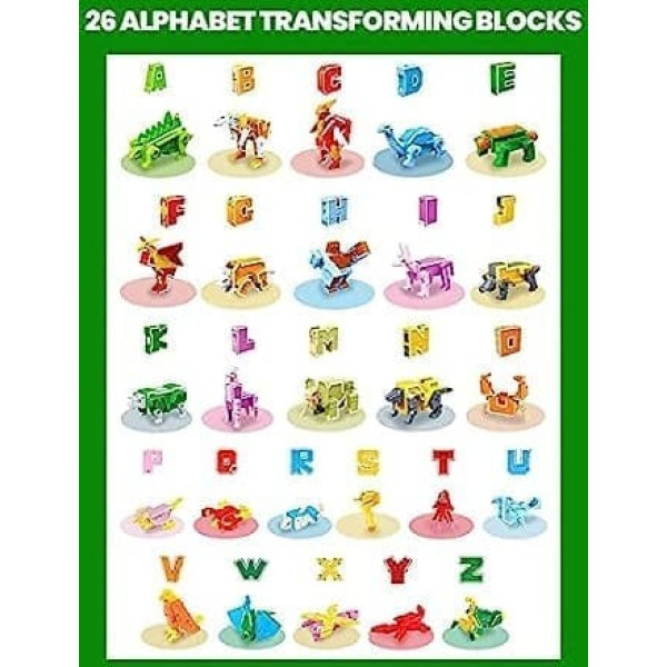 OBEST Pack of 26 Alphabet Robots, A-Z Letter Transformer Toy, for Children ABC English Learning, DIY Dinosaur/Animals/Robots, Educational Deformation Toys, Birthday Gift for 6+ Years Children