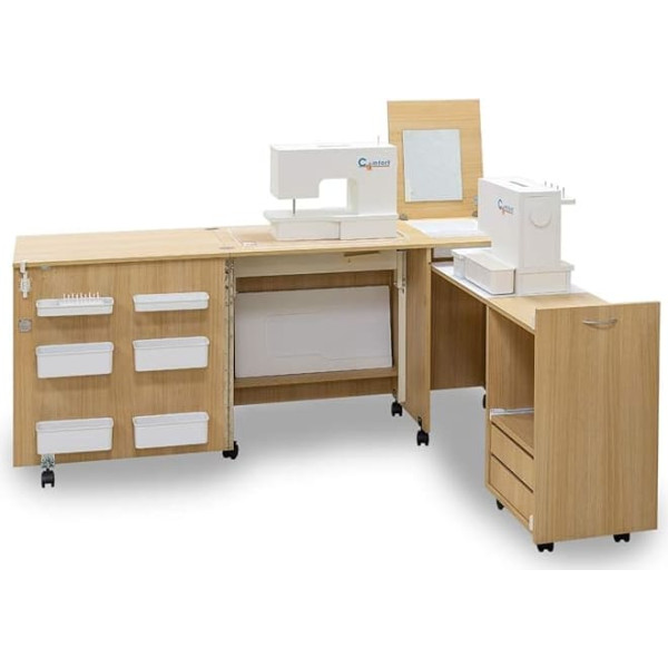 Comfort 3 | Шкаф для швейных машин | Мебель для шитья | Стол для шитья | (белый премиум, L (пневматический подъем от 10 до 15 кг))