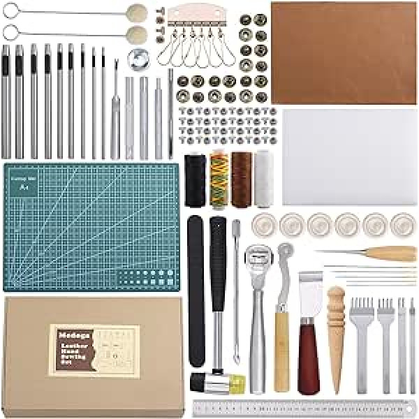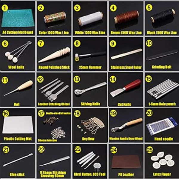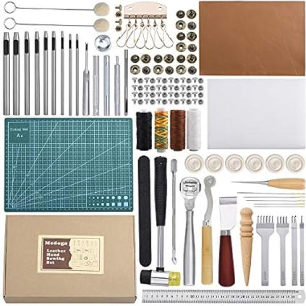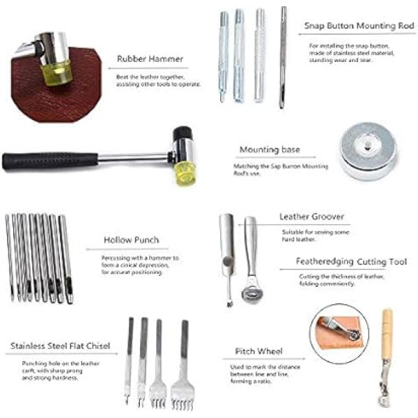 Leather Sewing Tools 44 Pieces Leather Hand Tool Kit for Hand Sewing, Stamp Set and Saddle Making 44PSC Basic Tools Kit