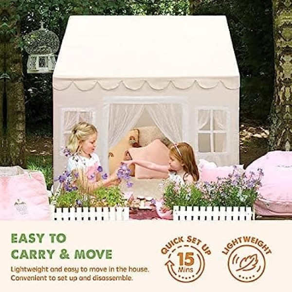 Tiny Land Children's Indoor Tent with Mat and Lights, Children's Playhouse Indoor Play Tent Princess Children's Play Tent Children's Room Decoration Reading Tent & Play Room for Toddlers 3-13 Years