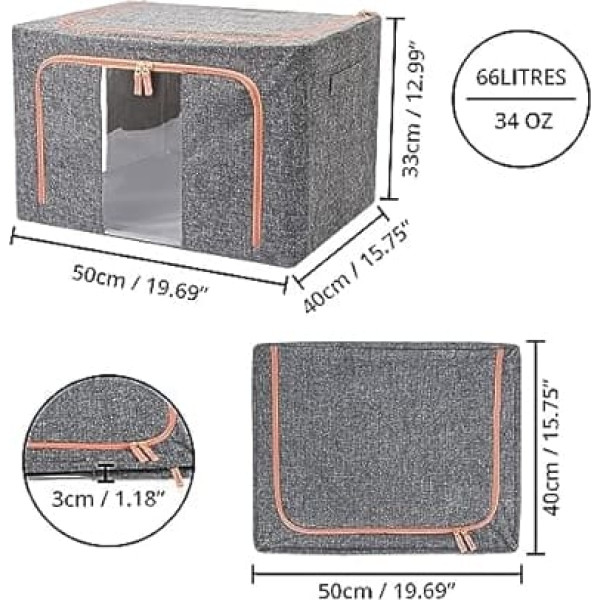 Belle Vous Pack of 2 Foldable Wardrobe Organiser with Steel Frame - Fabric Boxes Storage with Viewing Windows & Reinforced Handles - Large Organiser System Wardrobe, Bed Linen & More