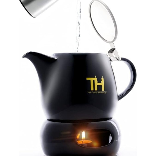 Thiru Teapot with Warmer Set - Double-Walled Porcelain Structure - 1.2 L Volume - Handmade Teapot Porcelain Ceramic - Includes Stainless Steel Strainer Insert and Warmer