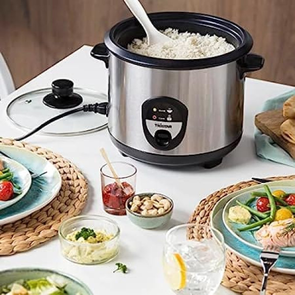 Tristar RK Rice Cooker, Boil Dry Protection, Black Stainless Steel