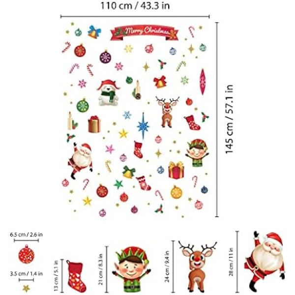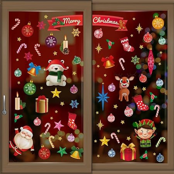 WALPLUS Weihnachten Fensteraufkleber Clings Xmas Decoration Sale Clearance Wiederverwendbare Doppelseitige Druckaufkleber für Glas Wohnzimmer Fenster Display Bunte Xmas with Friends 113 Stück